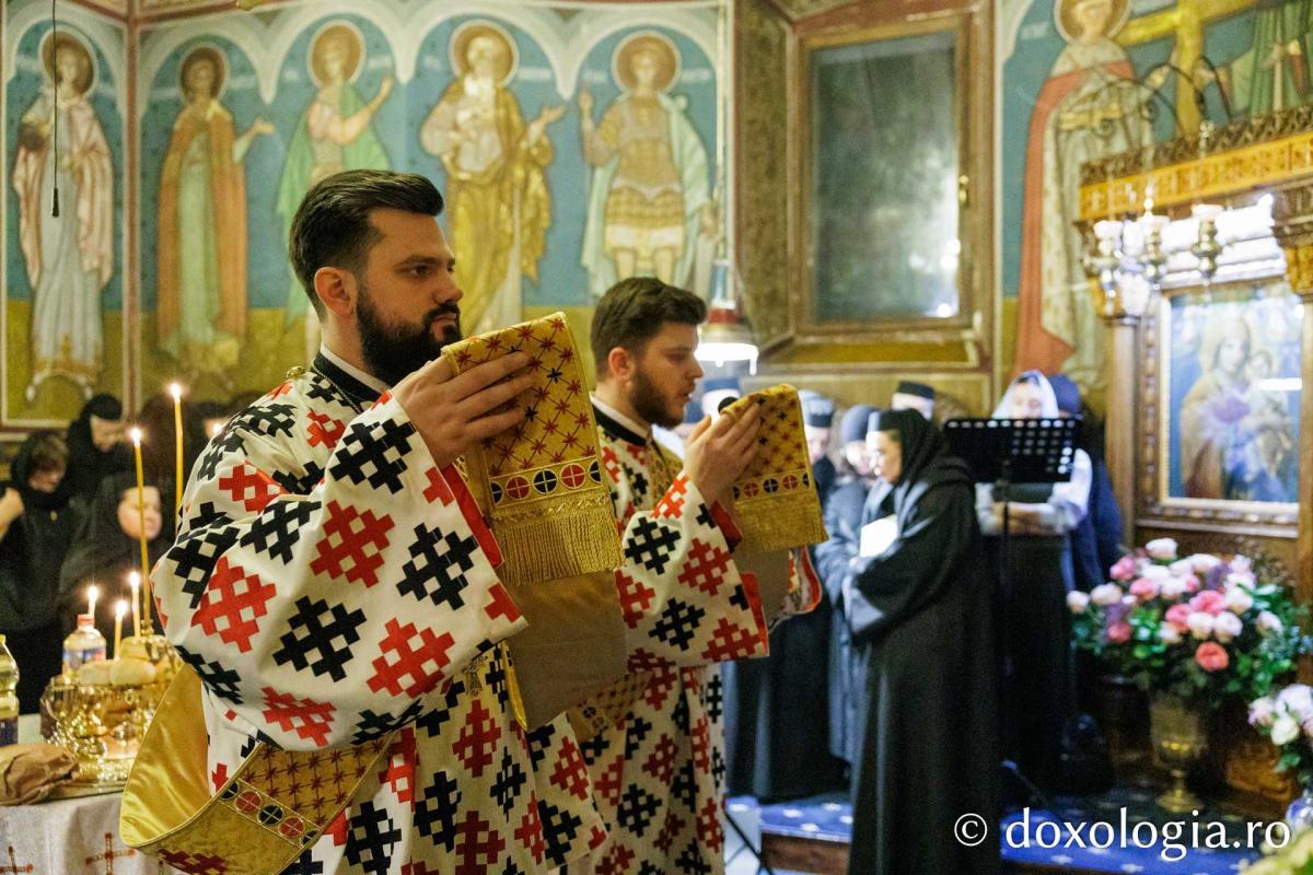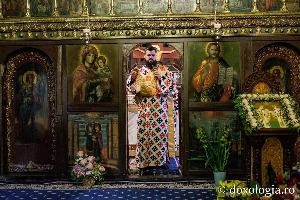 Sfânta Liturghie a fost săvârșită de Înaltpreasfinţitul Părinte Teofan, Mitropolitul Moldovei și Bucovinei, înconjurat de un sobor de preoți și diaconi.
